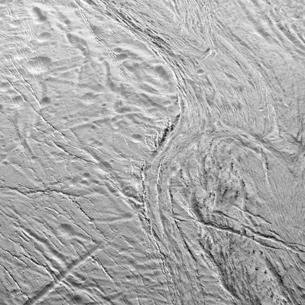 Cassini a survolé la lune Encelade pour la 23e et dernière fois de sa mission le 19 décembre dernier et a dévoilé des images de ce monde glacé qui fait l’objet de nombreuses attentions. En effet, au cours des survols successifs de cette lune, la sonde a révélé la nature d’Encelade : un monde glacé avec des geysers de glace d’eau s’échappant de fractures proches de son pôle sud, et des zones presque lisses. Les scientifiques ont alors émis l’hypothèse qu’un océan d’eau liquide serait présent sous la croûte glacée. La lune pourrait alors être susceptible d’abriter une vie microbienne, simple en raison des conditions extrêmes. Ce survol avait donc pour objectif principal de confirmer cette hypothèse de l’océan liquide en observant le flux de chaleur à travers le terrain polaire sud d’Encelade par le spectromètre à bord de la sonde. Il faut désormais attendre les résultats des mesures.