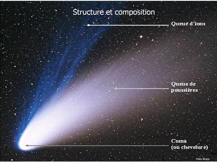 La comète se rapprochant de plus en plus du soleil, les couches supérieures sont doucement réchauffées, et les glaces gelées subliment. Le gaz qui s’en échappe envoie une grande quantité de poussières dans l’espace, et cela constitue une coma de la comète de plus en plus large.