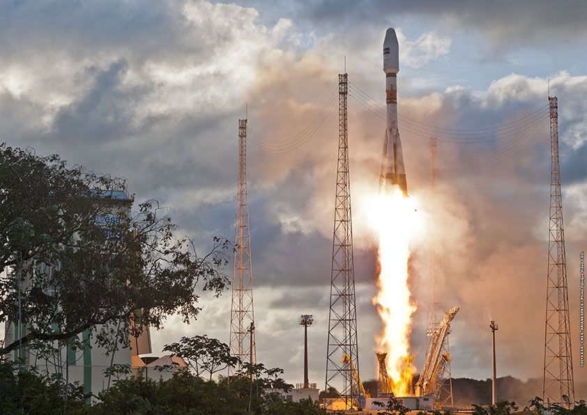 Jeudi 3 avril à 21h02 UTC, la 7e Soyouz depuis le Centre Spatial Guyanais a pris son envol et a mis sur orbite le satellite SENTINEL 1A :