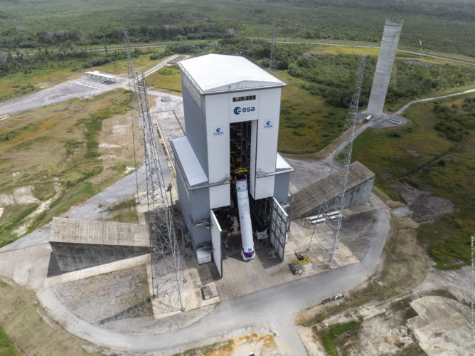 Ces opérations ont été réalisées au Centre Spatial Guyanais sous la responsabilité de l’Agence Spatiale Européenne et exécutées par une équipe intégrée ESA, ArianeGroup, CNES