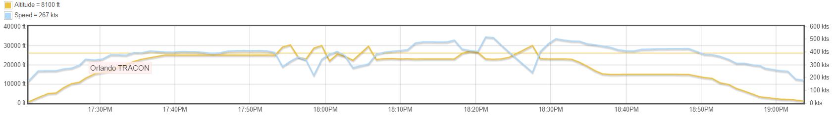 Sur le graphique ci-dessus et les données du site flightaware.com, l’avion est allé à une altitude maximale de 30 000 pieds et descend entre 1000 et 2000 mètres à chaque parabole. Mais elles n’apparaissent pas clairement sur le graphique.