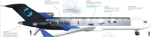 L’intérieur du Boeing 727 pour les vols paraboliques de ZeroG Corp. (credits GoZeroG)