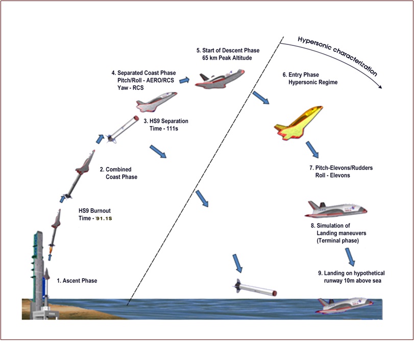 Après un peu plus de 90 secondes de vol et une vitesse maximale atteinte de Mach 6, l’engin spatial a été séparé du lanceur à une altitude d’environ 56 kilomètres. La mini-navette a continué à voler jusqu’à une altitude de 65 km, et à une vitesse maximale de 4,8 Mach, puis a entamé sa descente. Après 12 minutes et 50 secondes, l’engin a amerri dans le Golfe du Bengale à environ 450 km du site de lancement. Il n’a pas été récupéré.