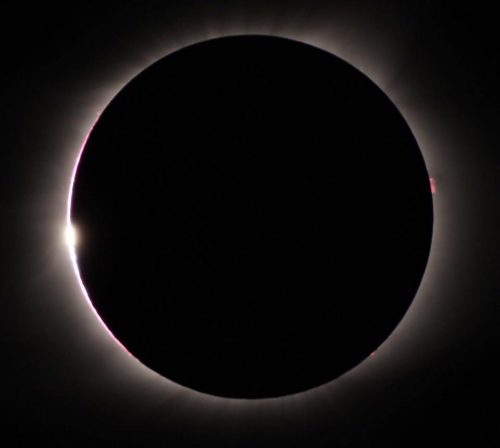 Depuis Sun Valley dans l’Idaho, Anne et sa famille ont pu voir une magnifique éclipse. Sur cette photo, 2 éruptions solaires sont bien visibles (crédit T. Grudzien)