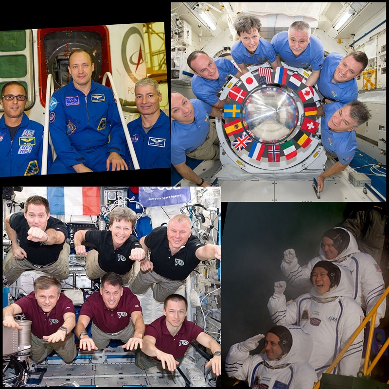 Les différents équipages de l’ISS au cours de 2017 (photos ESA/NASA/Roscosmos)