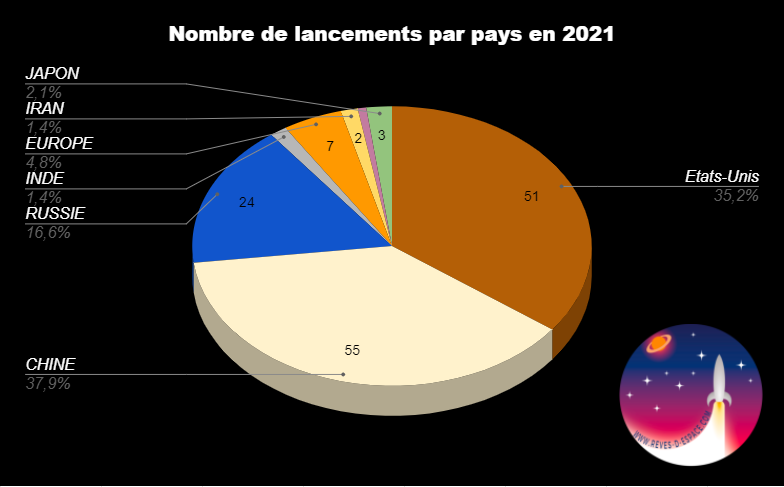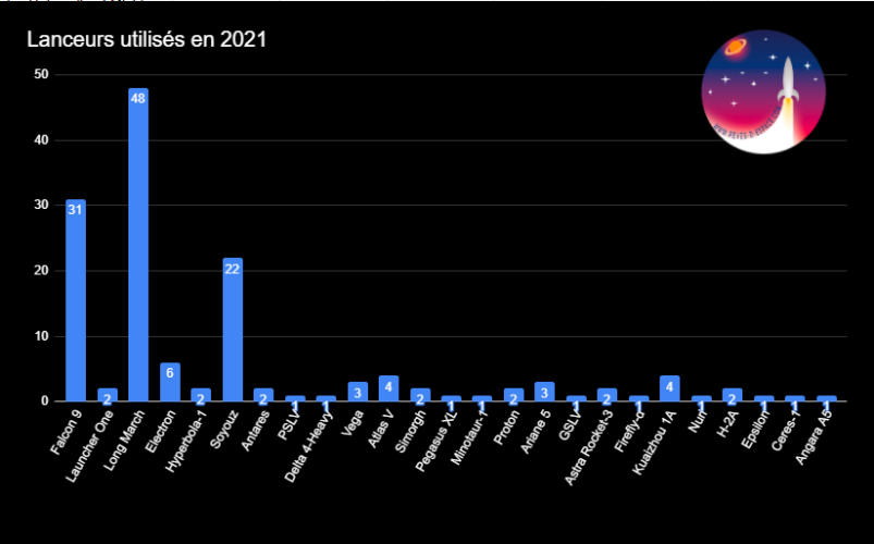 Cette année 2021 a connu une année record : 145 lancements, ou 146 selon les calculs [voir ci-après].