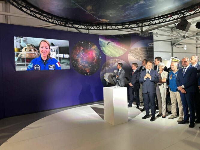 Il a été dévoilé le vendredi 20 juin au Salon du Bourget en présence du président Macron avec Sophie en vidéo conférence depuis Houston où elle poursuit son entraînement.