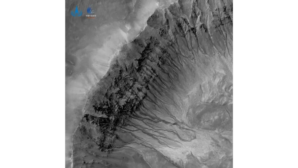 Une image de caméra haute résolution du cratère Triolet prise par Tianwen 1 le 17 avril 2022. (Crédit image : CNSA/PEC)