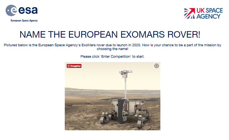 À l’instar de la NASA, l’Agence Spatiale Européenne et l’agence spatiale britannique ont lancé un appel à idées pour trouver le nom d’une de ses missions : le rover ExoMars 2020.
