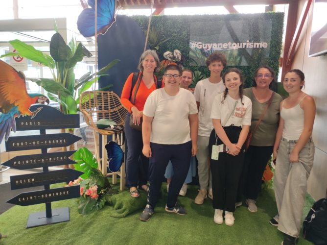 Camille, Faustine, Kimberley, Julien et Nolhan, et leur professeure Hélène, ont vécu un séjour bref en Guyane, après un travail de plusieurs semaines sur leur projet “Lunaponie”, gagnant du concours 2024 de Space Elevator.