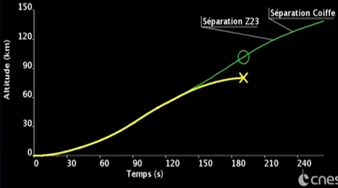 Mais environ deux minutes après le décollage, peu après l’allumage attendu du deuxième étage, le Zefiro 23, une anomalie s’est produite, entraînant rapidement une trajectoire dégradée du lanceur.